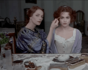 Kate with her patron, Aunt Maude, primping her for a society party. Charlotte Rampling and Helena in costume, the heart stops.