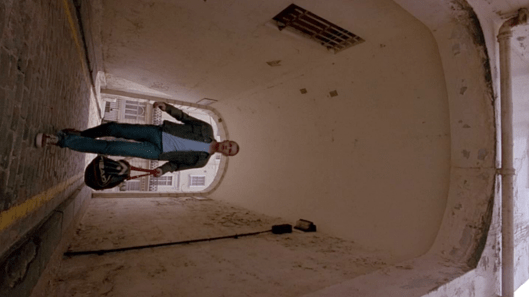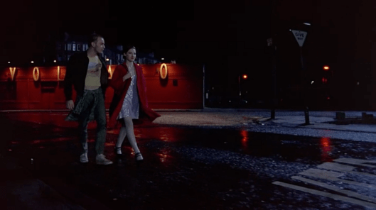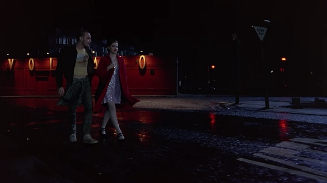 I just like how Boyle framed this shot. The red reflections in the puddle, nice touch. Ewan McGregor and Kelly Macdonald.