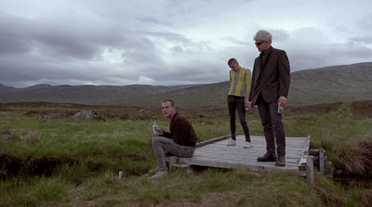 This is where Mark gives his, “It’s shite being Scottish,” speech. He’s speaking of not having a future and hating his present. One can see beauty and purity or desolation and isolation in this landscape. Ewan McGregor, Ewen Bremner, Jonny Lee Miller.