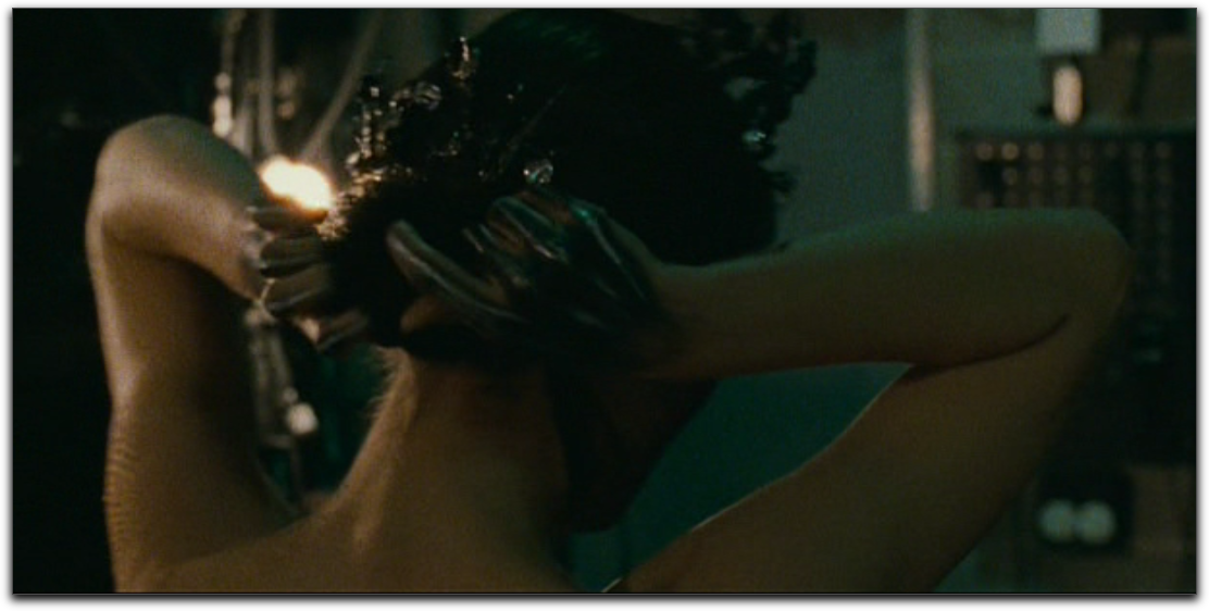 Nina finally letting go and becoming the black swan. I love the black dripping down her tights.