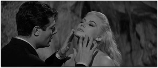 Marcello meets American actress, Sylvia Rank, Anita Ekberg, and deems her to be everything. She is lust, love, home, hearth, all rolled into one. And coincidentally, she also possesses the most intimidating cleavage in all of cinema.