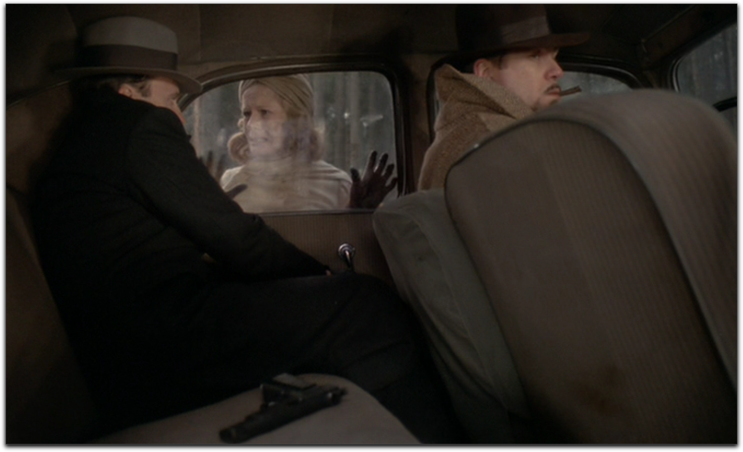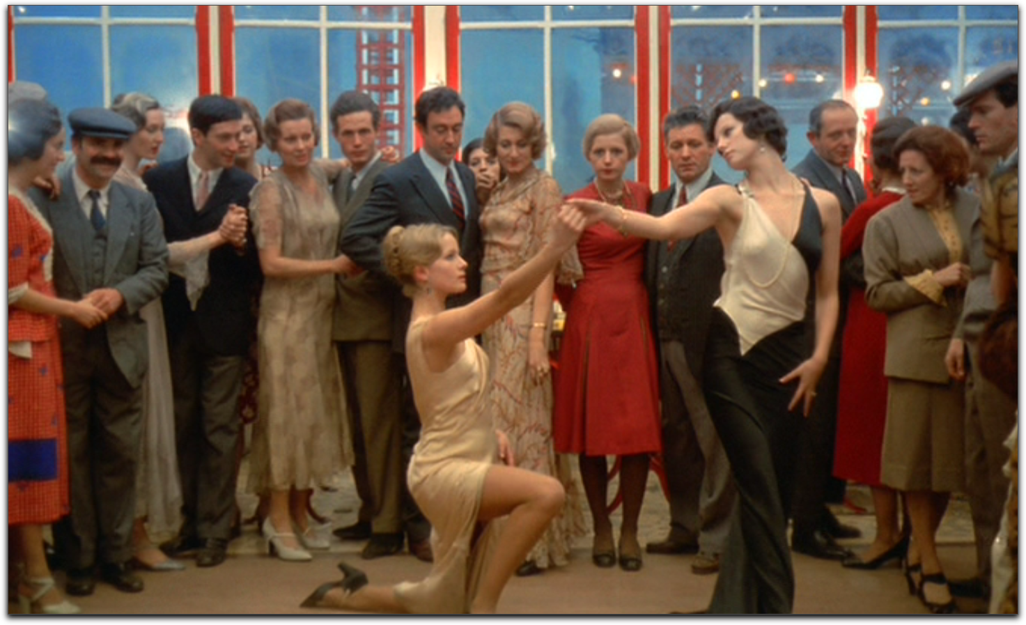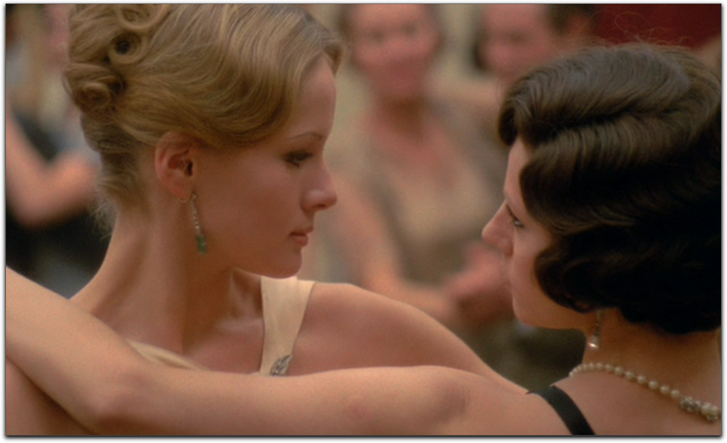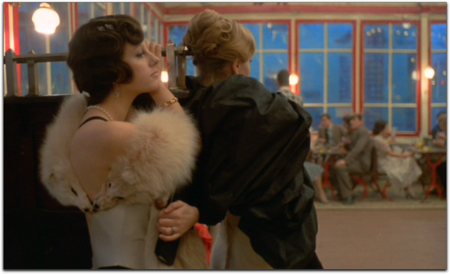 Tonya still stands out because she’s in color, albeit not as much as contrast as before, while those around her are in drab neutrals. This delicate pleated collar is a great detail.