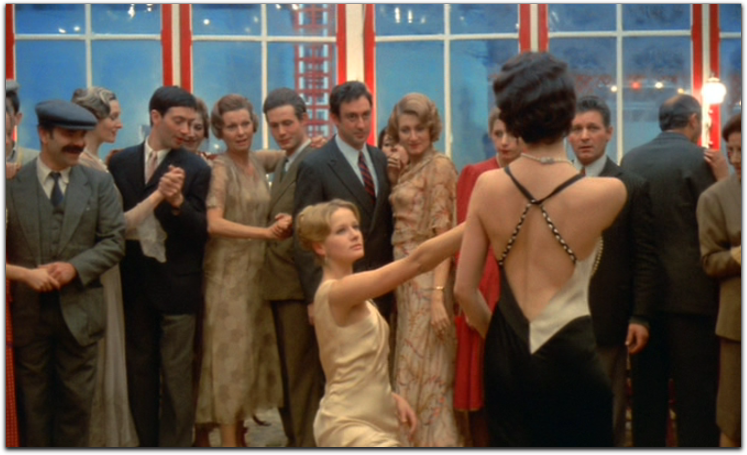 Here Pasha is the lowly one, parting the upper-class sea. Tables will be turned soon. I love his coat from the back and his jauntily tipped cap.
