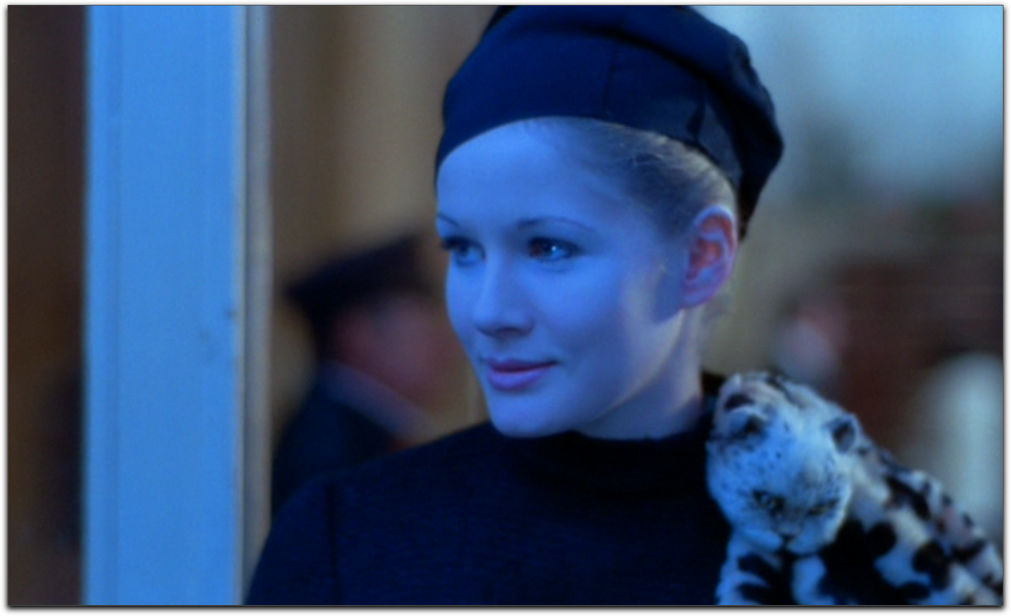 Her eyes are striking, hooded enough to look exotic, crystal clear blue. And let’s just soak up how fab that sable hat is.