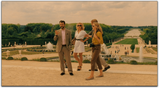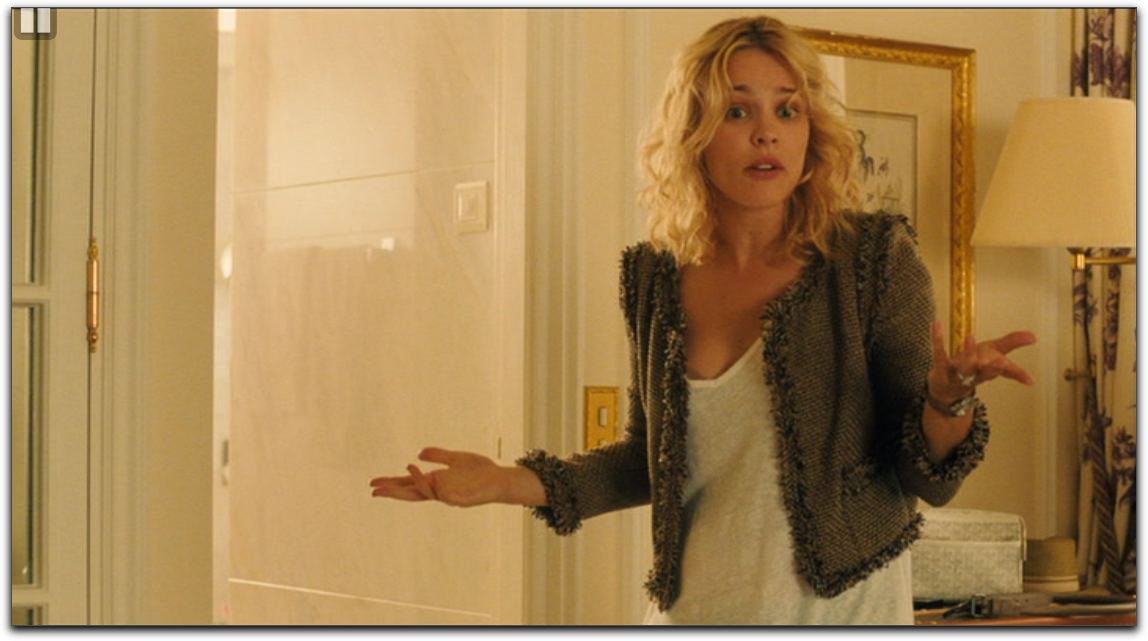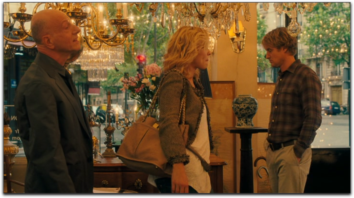 They cross paths, avert their eyes. Violins sing longingly in the background. Nat King Cole croons in Spanish, gives it a European feel. The music sounds romantic, sultry when they’re together, plaintive and melancholy when only one of them is seen. The instrumental music also reminds me of the music in “Room with a View” when Lucy, Charlotte and Ms. Lavish walk around Florence. Even the stuccoed buildings look vaguely Italian.