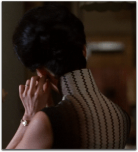 I don't know if it's deliberate, but this has a "Breakfast at Tiffany's" feel. The pearls, hair, dress, and she's a party girl too, only this is the anti-Tiffany's, and the girl and boy don't end up together.